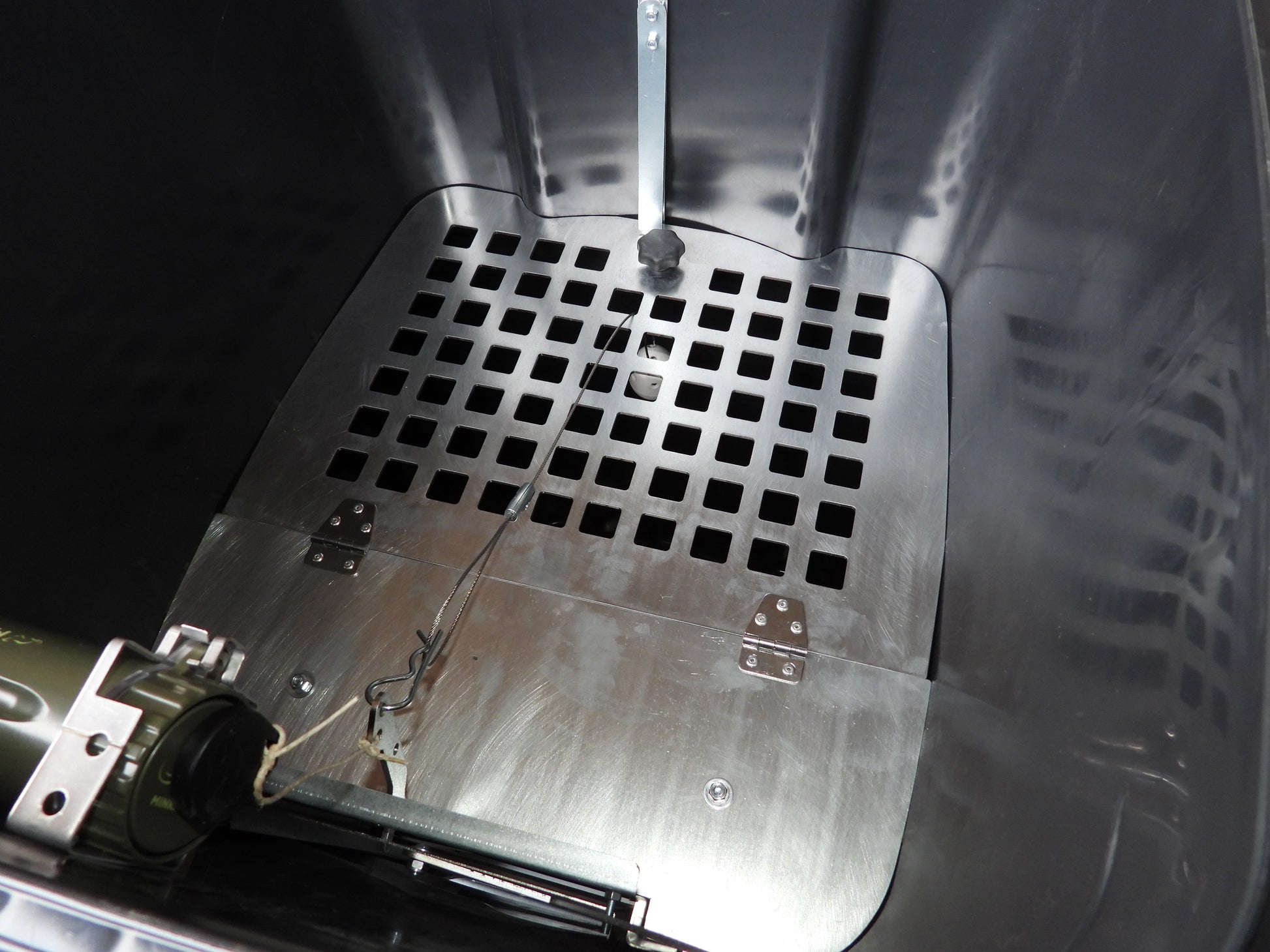 Fælden efterligner en skraldespand – både form og funktion – hvilket gør den ekstra attraktiv for vaskebjørne. Den er robust, nem at opstille og designet til at fungere effektivt i miljøer med menneskelig aktivitet.